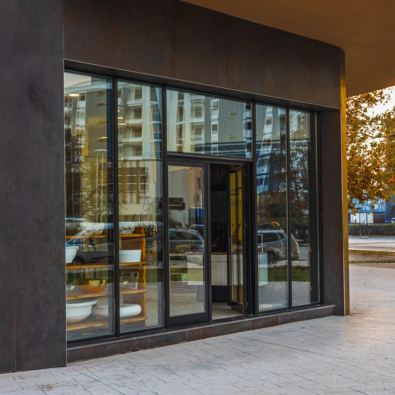 Comercialización de puertas de cristal de alta calidad, incluyendo modelos de mamparas fijas, puertas deslizantes y flotantes, adaptadas a necesidades residenciales o comerciales.